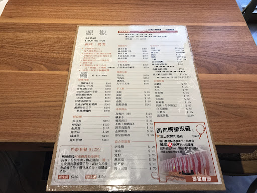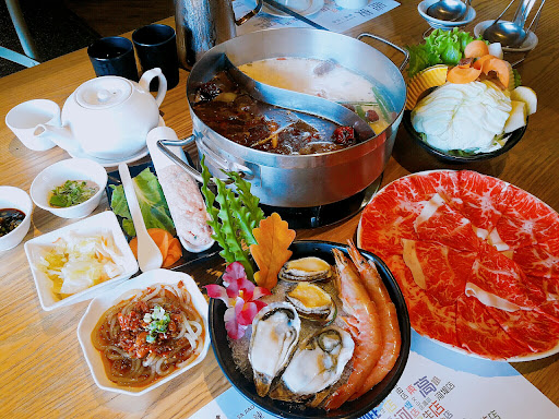 IG:mr.foodhunter . 🔻鴛鴦湯底-麻辣:店家主推的麻辣鍋湯底,我們僅選擇小辣就滿符合我們吃辣的程度。聽說中辣就會有點辣,裡面有許多辣椒和香料,提供的鴨血、豆腐都非常入味,我個人很愛吃鴨血,鹹香水嫩,老婆更愛豆腐。若吃到一半覺得不夠辣,還可以請店家幫忙調整辣度。 🔻鴛鴦湯底-養生:養生鍋也就是白湯,喝起來不會有中藥苦味,但有些微的藥香味,我喜歡放入高麗菜吸滿湯汁很好吃。直接喝白湯口味也是比較重,但喝起來相當溫醇濃郁,是好喝的湯頭。. . 🔻套餐-霜降豬肉:肉質看起來切得厚薄適中,放進麻辣鍋裡涮個三四下就熟的差不多,而且粉紅色的肉質很漂亮。吃下去的口感很有彈性,涮過之後完全不會有乾柴的肉片感覺,多汁好吃又沒有腥味,很好吃的霜降豬肉。 . 🔻套餐-雙人海鮮:有提供天使紅蝦2、鮑魚2、生蠔*2,天使紅蝦滿好吃的,蝦頭好像沒太多料。鮑魚的部分煮過之後還是滿有彈性的。生蠔的部分稍微煮過之後很美味,我喜歡生蠔。 . 🔻套餐-豬肉草蝦漿:會建議分小塊一點煮會更方便入口,口感的部分比較偏豬肉丸,草蝦漿的感覺比較不明顯,但是個人覺得豬肉味道偏強,海陸漿整體比較像吃豬肉丸的本質會更多一點 . 🔻滷水大腸$220:上桌就可以直接食用的滷大腸,入味且香氣足,而且口感好嚼不軟爛,我個人更喜歡丟進麻辣鍋稍微燙一下更有不同滋味,雖然價格不便宜,但滷大腸好吃。 . 🔻甜點-西瓜冰:特別的是小玉西瓜挖成球狀,一球球的水果吃起來真的是方便又吸睛。底下是剉冰淋上黑糖。還有許多小棉花糖增加口感。吃完油膩的麻辣鍋就是要吃冰才能畫下完美句點呀! . 🔻心得:天氣越來越冷,又到了三不五時就想吃麻辣鍋的季節,兩個人享受這頓大餐很滿意。店家的地理位置因為鄰近辦公大樓,當天用餐時就發現許多下班的人來吃,平常日的晚餐人潮也是絡繹不絕,還看到有公司團體約10幾人的聚會很熱鬧。 店內的裝潢很合我的心意,因為個人比較討厭髒亂的感覺,乾淨明亮就是舒服,而且餐桌的空間也是滿大的,不用太擔心食材擺不完,就算加點也有提供小桌子擺放,餐桌底下還有籃子可以放包包物品。 料理的口味很不錯,愛吃辣但又不是很會吃辣的老婆也很滿意辣度的調整,小辣就有味道但不至於太辣,湯頭喝起來感覺得出來鮮味十足,鍋底配料都很入味,尤其是店家的食材也都很新鮮,不管怎麼煮都滿好吃的,雖然點的東西有點多,但是兩個人還是完全吃得一乾二淨。 服務的部分很專業,店員會隨時詢問是否需要添加鍋底,完全不怕客戶吃,也會關心一下辣度是否需要調整,其中一個店員介紹說明相當幹練清楚,很佩服,而且吃不完後也可以打包,打包前還可以請店家加滿鍋底,帶回家又是一頓大餐呀~ 說真的,以這個價位來講兩個人還是有點貴,但並不是店家的價格定位太高,而是因為兩個人吃這種麻辣鍋物本來就有點奢侈,若三四人用餐想必會更划算,火鍋店擔心的油膩環境這邊完全沒這個問題,寬敞明亮的舒適用餐環境讓人很輕鬆,能夠吃到一頓好吃的麻辣鴛鴦火鍋,真的是冬天裡最幸福的事情呀~好吃推薦給大家唷!!! . 【灑椒。麻辣...