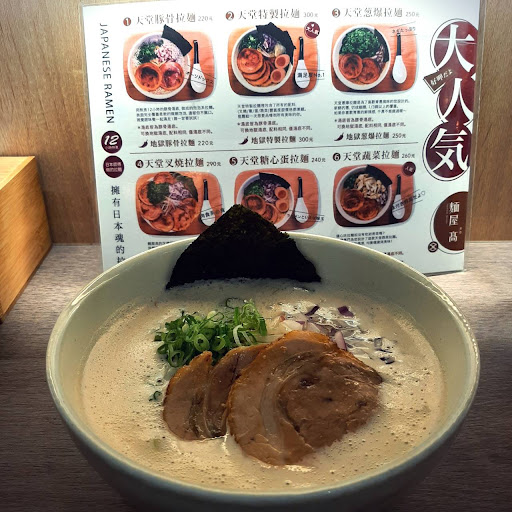 自2019年5月開幕的麵屋高,主打兩大湯頭:天堂與地獄,以豚骨湯頭為基底,調整成接近台灣人口味、好入口帶有綿密感的「泡系」而聞名,同時以店內氛圍極具日本居酒店風、店員和師傅多為日本人而廣為麵友所知。