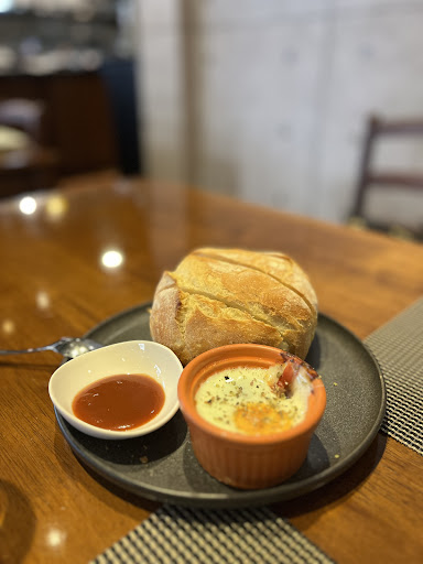Read more朋友推薦的A steak牛排,可以享受到很棒的牛排體驗。 餐前一樣會有麵包,跟有名牛排館一樣的是麵包很好吃且可以續,比較特別的是他不是給奶油去搭配麵包,而是提供番茄蛋+辣醬搭配,兩者搭配在一起的話非常棒,單吃番茄蛋搭配的話我自己覺得差了一點但同行友人覺得也很棒。 值得一提的是套餐部分,加價套餐就享有前菜/湯品/飲料/甜點,且價錢超級划算! 前菜部分這次我們有點了生煎干貝/厚切培根/招牌前菜。 生煎干貝的口感很棒,調製的碎杏鮑菇羅勒醬也很讚,蠻推薦的。 厚切培根的厚度真的很厚且份量非常足夠,吃起來非常滿足。 招牌前菜看起來是海鮮綜合沙拉的感覺,沒特別愛。 湯品部分有招牌例湯(今天是海鮮濃湯)和洋蔥湯,洋蔥濃湯屬於比較淡的味道但搭配麵包跟起司之後味道也還不錯,海鮮濃湯吃起來有點像搭配了龍蝦跟鮮蝦的味道,蠻不賴的。 牛排部分我們點了老饕/肋眼/紐約客/伊比利上蓋,店家搭配的應該是海鹽/玫瑰鹽,牛排部分都是乾式熟成。 老饕牛排(沒預訂的話現場會有份數限制, 建議喜歡老饕的話可以電話訂位先跟店家確認),但口感很棒,很值得推薦。 肋眼則是扣掉老饕後的肋眼,這個點的時候可以在確認下,不然點了肋眼期待也有吃到老饕的話可能會有點失望,但表面也是煎的很漂亮。 紐約客的口感跟肉味也是如預期般的很讚,喜歡肉味重一點的話可以點這個。 伊比利上蓋之前比較少吃到,這次友人點了之後非常超乎預期,很好吃! 美中不足的是牛排刀稍嫌不夠鋒利,沏的時候以為牛排很硬,但咬下去才發現真的很嫩(後面有跟店家反應, 店家也很客氣的反應會多多磨),另外就是店家為了保持牛排的熟度並沒有讓上菜的鑄鐵鍋溫度維持很高,所以我們吃到的牛排溫度都是比較不夠的,下次會請店家在上菜前先加熱鑄鐵鍋看看。 隔壁桌有點丁骨牛排,上菜的時候真的香氣跟視覺都很享受。 飲料跟甜點的部分就一般般,中規中矩但以套餐這價位其實沒什麼很挑剔了。 整體評論用餐體驗很舒服牛排也很好吃...