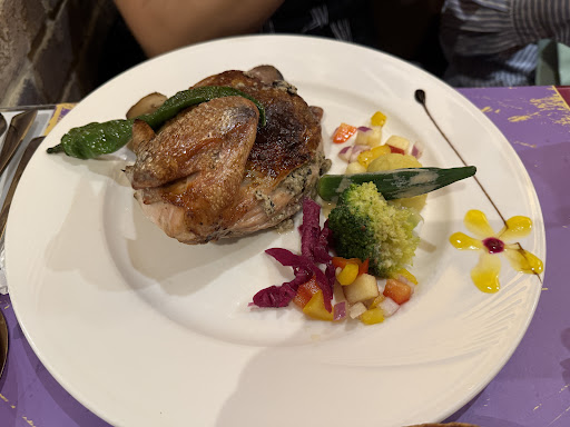 另一道「寡婦雞」同樣表現出色。雞肉烹調得相當滑嫩,醬料滲入其中,味道濃厚卻不膩口。這道料理帶有一點「家常感」的溫度,但又結合了專業廚藝的細膩處理,讓人既熟悉又新鮮。它不像威靈頓牛排那樣華麗,卻有著能讓人想一口接一口的魅力。
