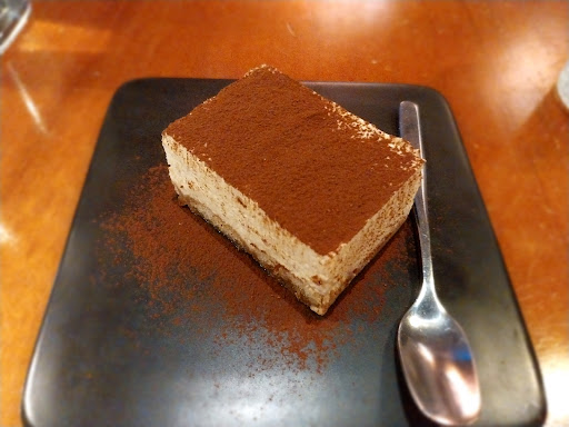 The restaurant is good and the service was nice although it's a small place and you use a QR code to order. Not the warmest way of attending customers I think, but it's my personal opinion! I did see a few odd things... Every pizza has parmesan but not necessarily mozzarella. It's a very odd thing to me as a French person who's been to Italy. Mozzarella is the base, parmesan is some extra. You can always ask to remove it if you don't like it with me but then you'd have a cheese-less pizza which is unusual. They also put a lot parmesan on everything, even in the small starter salad without necessarily indicating it which I find a bit awkward. I had pasta and the portions were quite small. Also the pasta used didn't seem very "western" to me. The texture reminded me more of Chinese thick noodles than actual spaghetti. The tiramisu for dessert...
