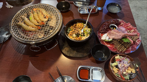 點了1699的雙人套餐 豬骨湯很好喝👍🏻可以無限續 一開始點完餐先上烤爐和飲料後要等稍微久一點肉品才會上來 旺來冰紅茶好喝👍🏻有很多鳳梨果肉醬,配燒烤比較解膩,但比較甜,應該可以點個微糖 石鍋拌飯好吃👍🏻送上來後店員會幫忙拌好 老油條豆腐沙拉清爽好吃👍🏻老油條很脆、豆腐很嫩,調味類似胡麻沙拉