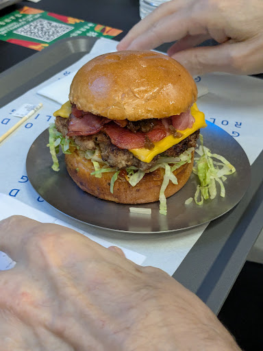 Read moreDecent burger. Decent bun. A bit salty (maybe because I had the "bacon" cheese burger). No MSG. Drinks are very basic fountain drinks. No ice, but cold and, best is they have soda water to help dilute the sweetness. Service is ok. Pretty much a self-service place. They got the order a bit wrong - with an extra burger. They helped clear trays at end of our meal. Atmosphere - in the basement so not good for handicapped people, kinda of noisy, and kind of cold. No windows for natural light. Bathroom is clean. I like the reusable plates and cups -...