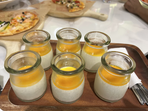 奶酪上有芒果果醬,應是罐頭醬, 口感吃起來普普像央廚出來的那種。 焦糖布蕾很綿密,奶香十足, 但焦糖有點太厚了, 綿密的口感已融在口裡, 剩焦化味的厚片糖塊很硬的存在嘴裡, 有點太衝突。