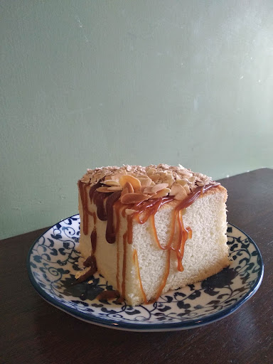 ---------------食後感------------ 【焦糖海鹽火山蛋糕】$90 上層鋪滿烤過的杏仁片與燕麥 蓬鬆綿密的海綿蛋糕 搭配鹹甜滋味的淋醬 不會讓人覺得甜膩 但整體吃起來 口會乾 建議搭配飲品一起享用會更好~ ps.它的醬單吃很像海鹽牛奶糖 但焦香味更為濃郁 個人喜愛程度★★★.5