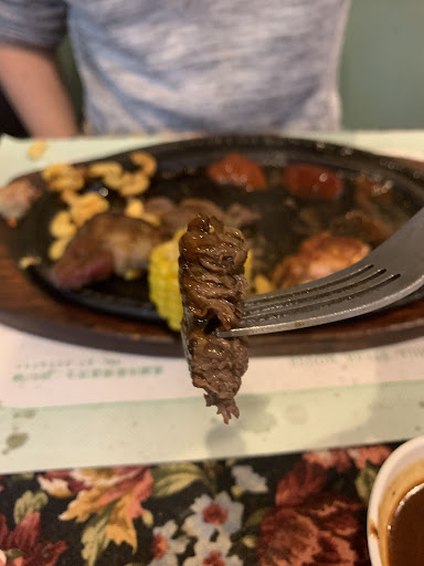 They start things off with some bread, soup and salad, and some ice cold sweet tea. But the real star of the show was the steak itself. Served on a sizzling platter, it was perfectly cooked and bursting with flavor. I loved the way the juices sizzled and mingled with the delicious aromas of the steak, creating an almost magical sensory experience.