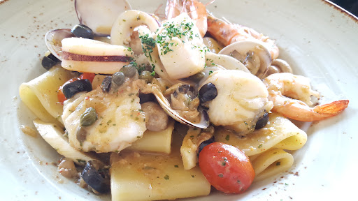 FOOD. Even score: two nicely done and two disappointing. SPANISH-STYLE PRAWNS (appetiser). Failed attempt to recreate gambas pil-pil. Too much oil, too little garlic. Bread provided but useless because the oil was almost tasteless. It wouldn't have happened with a quality one. Only the prawns considered alone were good. PASTA ALLA PUTTANESCA. Nothing to do with the Italian recipe that it borrows the name from. Just a Taiwanese fried noodle dish with uncooked hard zucchini, pieces of cherry tomatoes, canned mushrooms (they should be fresh for this price tag) and tasteless prawns. The pasta is factory-made and average quality (it's a known exported brand). Unforgivable not to hand-make it, considering that the restaurant even has an annexed bakery with all the required ingredients and machinery. A disaster. RISOTTO WITH SEA URCHINS. This is exactly what I expected from the restaurant: a unique European/Asian fusion experience. Italian rice cooked and made creamy to the right texture plus Taiwan-style spices and fresh seafood. Amazing. TIRAMISU. Faithful to the original Venetian recipe with biscuits made spongy by liquour, mascarpone cream and chocolate powder. Rare to find it this good in Asia. Kudos.