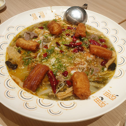 Read more比起過年的時候好吃。 食物. 🌕🌕🌕🌕🌑 《溜溜酸菜魚專賣店》為漢來旗下的中式餐館, 主打酸菜湯底, 有魚肉、牛肉及豬肉可選,其實可以都加進來, 另有涼拌及炸物等少樣菜色。 招牌酸菜魚(1~2人份).$$490元 川椒雙味催淚蛋.$$180元 紅糖軟糍.$$180元 王老吉.$$55元 陳皮梨湯.$$70元 今年過年時來吃覺得不太行,所以今天來翻案, 酸菜魚的味道是好的, 鱸魚切成超薄片,極嫩, 湯頭是誘人的酸辣,朋朋表示不下刁民, 但份量無敵少, 只有湯是2人份,配料只有兩筷子。