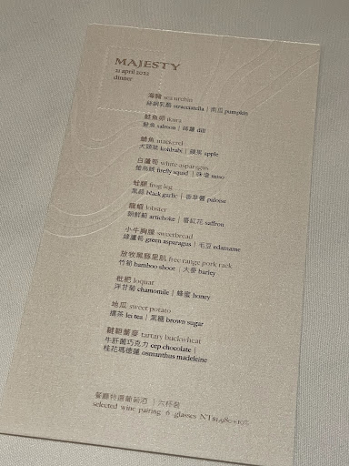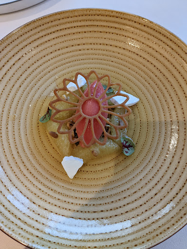 白蘆筍 水煮白蘆筍 / 生白蘆筍片 /味增荷蘭醬 /桂花酒釀 / 碳烤瑩烏賊 這道沒拍到,元素使用蠻多元的,還有添加水煮蛋白、酸膜葉、麵包屑去堆疊口感和風味層次,但個人還好,有點吃不出重點 但記憶點蠻深刻的是內、外場對於前往如廁的同行者在其回返後,仍能將該有的食材元素溫度控制的很好,真心優秀