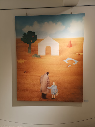 看完書也爽爽耍完廢,前往三樓欣賞畫作。一踏入展覽空間,鱷魚先生對著我說Hi~超現實主義的溫馨畫作,以動物擬人畫出人性心靈層面。真是意外,竟然有一層可以陶冶性靈的展覽空間。