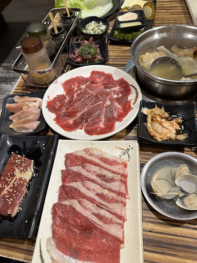 Read more餐點:🌟🌟🌟🌟🌟 送餐來很快,爐火很大真的可以烤的很快速,不怕吃不飽,相比其他家同樣使用炭火的店家,速度真的非常優秀,餐點肉質也是滿不錯的,醬汁很特別店家推薦烤肉醬跟味噌醬5:1滿搭的,不過我覺得火鍋湯有點可惜,個人很喜歡味噌鍋,不過相比醬料,火鍋湯底略不夠濃郁,涼拌洋蔥和蔥鹽的味道比例有點奇怪,不過其實整體瑕不掩瑜。補充一點,抽油煙機很大個不太會被煙吹到,有加分。 服務:🌟🌟🌟🌟🌟 服務的阿姨真的非常認真,每一道料理都會介紹,服務態度我看過最好的,而且也提醒多換烤網比較健康,我認為五星沒有疑問。 價格:🌟🌟🌟🌟 在吃過的同種類類別中,價格我覺得中間偏上,用餐時間100分鐘,60分鐘後最後加點,不過時間其實都滿足夠的。