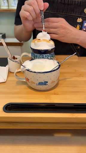 Read moreI found this cute little shop through a friend! It’s a cozy little space run by lovely and kind folks, who were super welcoming. We ordered the 3D foam art on a latte (Shiba Inu design), the Kenya drip coffee (iced), the tuna onion focaccia, and the peanut butter toast. The shop owner demonstrated how she creates the latte foam art, and the other staff member recommended how to take videos and pictures of the foam art for the gram 😁. In the end, they even gave us a complimentary little glass of coffee with a foam kitten on top, so as not to waste the rest of the milk foam.