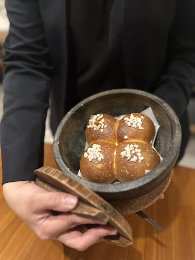 ❇️麵包 聽說布里歐麵包很厲害,但這天吃的可能稍微有點烤過頭,有點兒乾,建議真的要趁早吃完,第二個聽外場建議可以沾後面菜色的醬汁吃,但放久就又乾上加乾了很可惜。