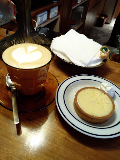 #中文在後面 Very cozy and comfortable place.the caramel latte was very smooth. The lemon tart was tasty but the crust was bitter and too crunchy. I asked the staff about it:it's over done/cooked. It's not proper to serve this to customers.