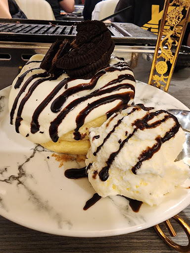 舒芙蕾雖然比不上專業舒芙蕾店,但不像外面有的根本是海綿蛋糕,熱熱的時候空氣感很夠、入口即化,稍微冷一點也會有綿密的口感;上面的口味很好吃,今天點oreo跟抹茶,我個人喜歡吃偏苦的抹茶所以覺得太甜了 評論區之前會寫沒有冰淇淋,但今天看了店內其他桌加上自己,都有冰淇淋,也拿掉上面的假花了;冰淇淋可以一直續,但我不喜歡吃香草冰淇淋,宵夜人很喜歡所以有續w