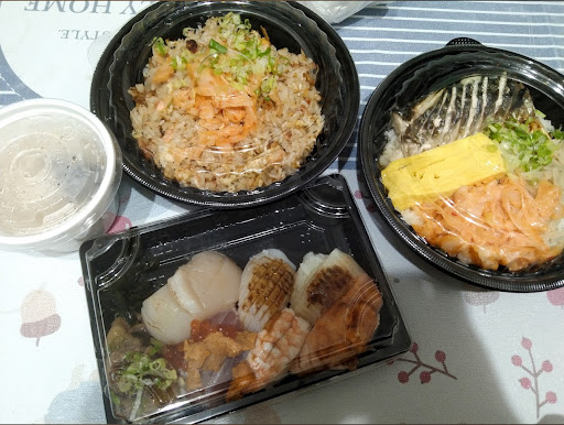 這次點了兩個炒飯、一個茶碗蒸、一個7貫的組合壽司,整整等一個多小時 等在於其次,去點餐的時候店內人很多,店家也有告知需要等待,但是因為我還要去別的地方辦事,覺得辦完回來應該也差不多了,點完餐後3、40分鐘,辦完事情回到店內,去詢問店家我的餐點,『店家回覆快好了』,所以我就在外面等候((為店家著想、因為下著雨身穿雨衣,不想淋濕店內))