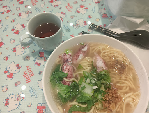 最喜歡的是小卷,超級新鮮,110塊的麵裡面有三隻小卷,鮮味十足,湯頭也很好喝,不會有喝完口渴的問題,喝起來我是覺得應該沒有加多少味素,整碗都是海鮮的香氣。 可以吃吃看基隆限定的吉古力,蠻酷的一個口感,很像不那麼脆的竹輪,相對軟糯一點,加一份30元,我是覺得吃一次就好,嚐鮮,但沒有好吃到我下次會想再吃,30塊有點貴,吃起來覺得沒那麼值得