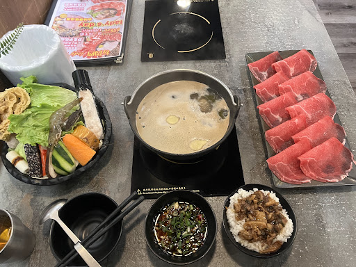 ▪️餐點 我們進店跟坐下來就送上一杯烏梅冰沙,讓人感覺很大方~ 湯頭很多種選擇,這次我們都點原味湯底和石頭湯底而已,原味湯底比較沒味道,不過我本身就是愛吃醬料的所以對我來說沒差xd 菜盤菜的部分是真的滿少的,肉量加倍後真的很多很多,愛吃肉肉的人很適合!肉質其實也不錯,我吃的是香草梅花豬。 打卡送的肉盤上面有打顆蛋,雖然是送的但一點不馬乎!google評論送的小點心窩窩頭熱熱的搭配煉乳和花生粉,非常滿足!送的炙燒牛肉也好好吃~ 醬料區就是很基本的醬料,中規中矩 飲料區還滿豐富的,有汽水機、熱茶類、還可以自己捲冰淇淋超好玩的! 整體用餐下來我覺得不錯,下次還會回訪! 不過以上是個人意見,我看了其他評論,有些人可能真的很介意湯頭、肉質、有些人覺得吃個飯還要用打卡那些的很麻煩之類的~我完全尊重,不過以我的立場還是推薦一波!