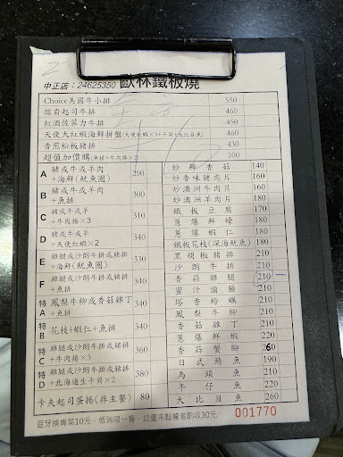 因菜單未註明共餐費、一人低消是多少,並不清楚共餐是需要再額外加註費用,用餐時間是下午2點左右,主要是陪朋友用餐,因此只點一份主餐。(豬+魚的餐點,是240)