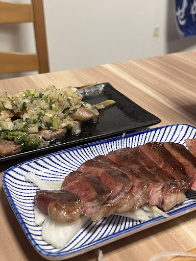 -鮭魚生魚片 新鮮、鮮甜,也切的蠻厚的,算是餐點中表現較好一些的,芥末比較沒什麼味道 -胡麻花椰菜 就是花椰菜+胡麻醬+柴魚片,胡麻醬好吃 -蛤蜊湯 大概是你媽也可以煮出來的味道,沒有特別驚艷,就是普通的,好喝 -炒烏龍麵 我覺得最雷的餐點,看過評論,店家有說大家都很喜歡他們的炒烏龍,對此我感到很質疑,路邊攤炒麵95塊都吃得到真的肉和海鮮,160塊只有魚板和蝦仁,甚至不是蝦子,讓我覺得很敷衍,湯汁太多更像是燴麵,調味應該是用紅薑,酸甜的味道,不日式也不好吃,完全不推薦 -酥炸牡蠣 同個價格,別間居酒屋會有五顆,外皮偏硬且厚,牡蠣本身偏小,不推薦 -蔥鹽豚肉串 比起蔥的味道,洋蔥味比較重,胡椒鹽或是鹽香味沒有出來,豬肉不好嚼很硬,不好吃、不推薦 -鹽烤牛排 相對豬肉稍微嫩一點點,部分還是有點老,偏甜,比起鹽烤更像...