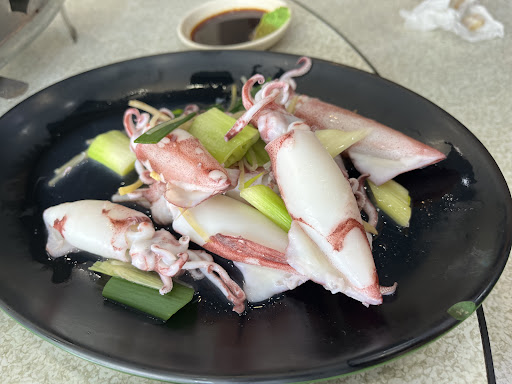 Surprisingly good taste, especially low to moderate salt seasoning, a healthy food stall, if I may say. We came in a hot high noon of busy Saturday. Only four (4) indoor tables. Saw the sign, pointing to 2nd floor outdoor seating (who would dare to go and get baked in less than 5-minute?). Oh, well, room temperature was still pretty hot, while 2 air conditioners and numerous fans were working on it’s best. Fried cabbage @ $90 was the best I had this year, light salted only to enhanced the vegetable natural sweetness. Amberjack, some called it yellow tail, or locally 紅甘魚, steamed at $700 a pretty good size, was very delicious. Neritic squid 小卷, highly recommend by this shop was only mediocre. Oysters garnished in garlic purée was okay. Seaweed mixed with whitebait soup was very good. Overall, seafood is all about freshness, and it’s like run of the house to see if you’re in luck to eat a good food. I guess that I will be back during weekdays to witness...