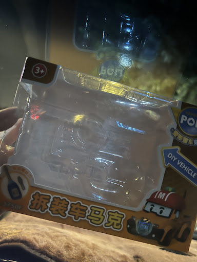(經老闆解釋,原來娃娃機各有不同的老闆,我們玩的剛好是別人的機台,這位老闆從自己的機台裡,送了一台玩具車給兒子,碰巧沒有在他的機台消費,他卻可以如此大方主動贈與,真的很感激🥹,讓小孩崩壞的世界重拾希望🤣)