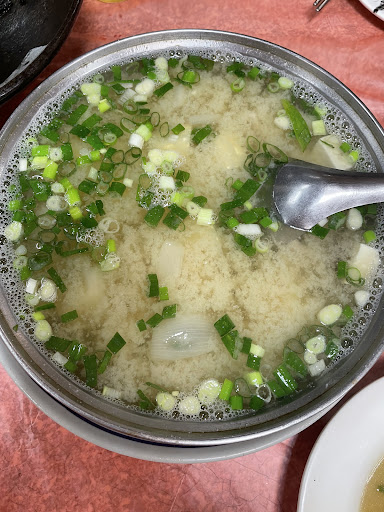 Read more外の生簀で食材を選んで、調理法を指定する方式です。我々は写真を見せてお願いして何とかなりました。エビを食べたかったのですが、今日は無いと言われ、伊勢海老は一つ2000元と高すぎたのでパス。 頼んだイカ墨の麺は茎わかめみたいな海藻も入っていて食感が面白く、パスタのような混ぜ麺のような初めて食べる味でしたが非常に美味しかったです。アサリも蛤のような見たことのない大きさ。味噌汁は魚のアラが入っていて美味しかったです。水草の炒めにも海鮮が少し入っていました。どれも美味しかったです。お会計は2人でお茶一本飲んで4品食べて1000元でした。少し高いかな。メニューが無く、定価を書いていないので何とも判別が付きませんが。どれも量が多いので、2人だと余り食べられないので4人以上がベストかと思います。味噌汁が特に多く、小さい...