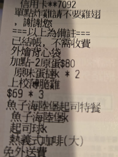 Read more114年1月27日中午到訪, 時常來基隆此店家消費, 人員服務態度佳,出餐快速, 此次到訪使用預定快取, 結果確訂錯時間,訂到28號, 感謝店員很熱心幫忙修改, 並立刻製作餐點出餐, 特別上來給予五星好評感謝!! 特別推薦這個檔期的焦糖脆蛋塔,紫芋金來金沙雞, 長期款超級推薦花生熔岩卡啦雞腿漢堡!! 另外目前預定快取XL餐,有加1元送蛋塔的活動, 推薦大家來此店家消費!! 未來一定會再回購!! Visited at noon on January 27, 2025, I often come to this store in Keelung to shop. The service attitude of the staff is good and the food is served quickly. I used reservation cache for this visit. It turned out that I booked the wrong time and booked it on the 28th. Thank you to the store clerk for his enthusiastic help with modifications. And prepare meals immediately and serve them, Special thanks for the five-star review! ! I particularly recommend the caramel crispy egg tart and purple taro golden sand chicken during this period. The long-term model highly recommends the Peanut Lava Kara Chicken Leg Burger! ! In addition, if you pre-order a quick XL meal, you can get an egg tart for an extra $1. Recommend everyone to come to this store to spend money! ! Will definitely repurchase in...