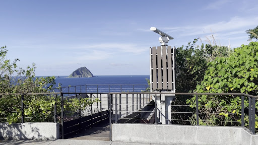 通過101階的考驗後,沒有馬上進咖啡廳吹冷氣,反而是先到右手邊的平台,看看這一片海景。可以看到下面的千疊敷,蕃字洞和阿拉寶灣。