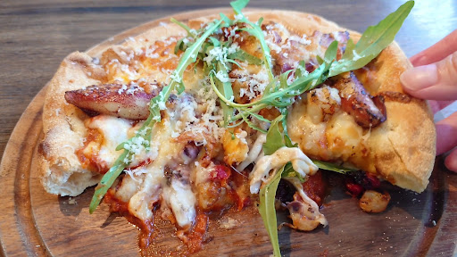 小卷 Pizza 420 元 ~ 餅皮偏厚式,吃起來像法式麵包的口感,香香酥酥,非常好吃,起司部份也不錯,唯獨小卷偏小,也烤得太焦了一點