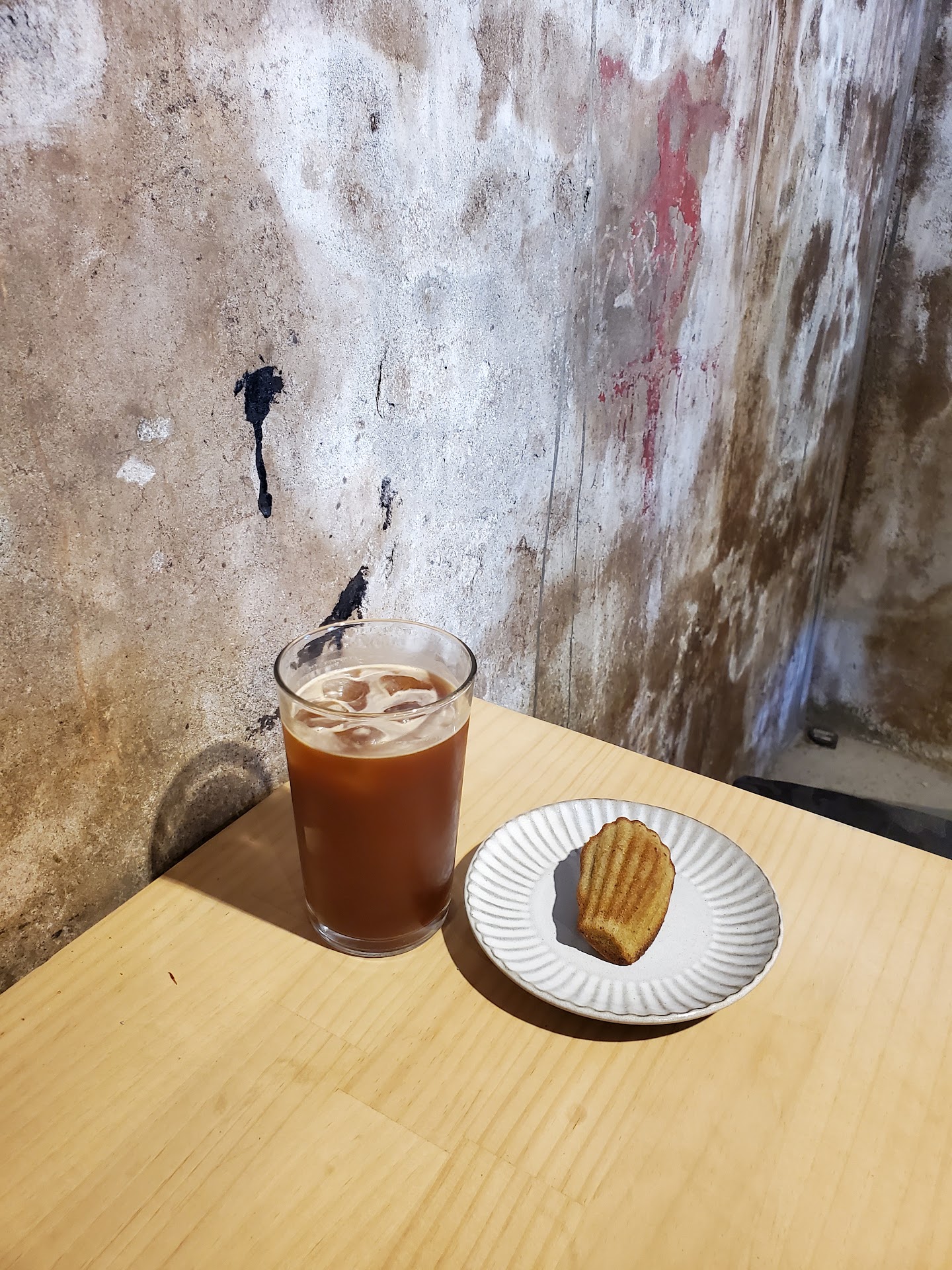A beautiful and chill little cafe, with rustic stone walls and wooden tables ~ minimum order for dining in is either one drink or 100nt worth of food per person, which is very affordable and flexible esp because my bf prefers to only get food items at coffeeshops ^^ the iced Americano was yummy, the Madeline was soft and sweet and the scones were delicious too (we got matcha and savory herb, both super good but herb took the crown!)❤