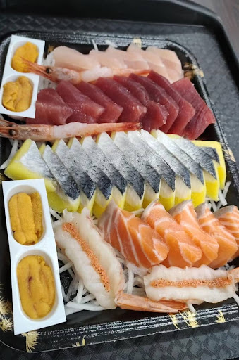 朱添鮮魚號主要販售的有生魚片、握壽司、軍艦壽司、海鮮丼飯、味噌湯、各式小菜。