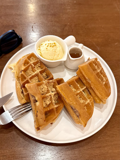 Read more⭐️⭐️⭐️⭐️⭐️ The food portions here are very generous 😋🍴 The waffles were crispy on the outside and fluffy inside, with a surprise of 年糕 (rice cake) inside that made every bite chewy and special