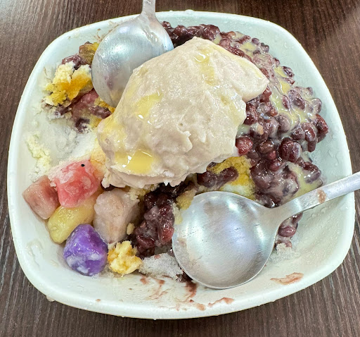 Read more除夕去過一趟~店休 今天再去一次~吃到了芋寶冰(100),紅豆芋泥湯 價格漲價了~不過吃到了超級綿密的芋泥,值了 剛進店裡,阿姨熱情招呼,請我們試吃竹葉花生、芝麻貢糖,芋頭一口酥,高粱麻糬好好吃~ 立馬買了回來當伴手禮。 值得再去~ PS冰品...