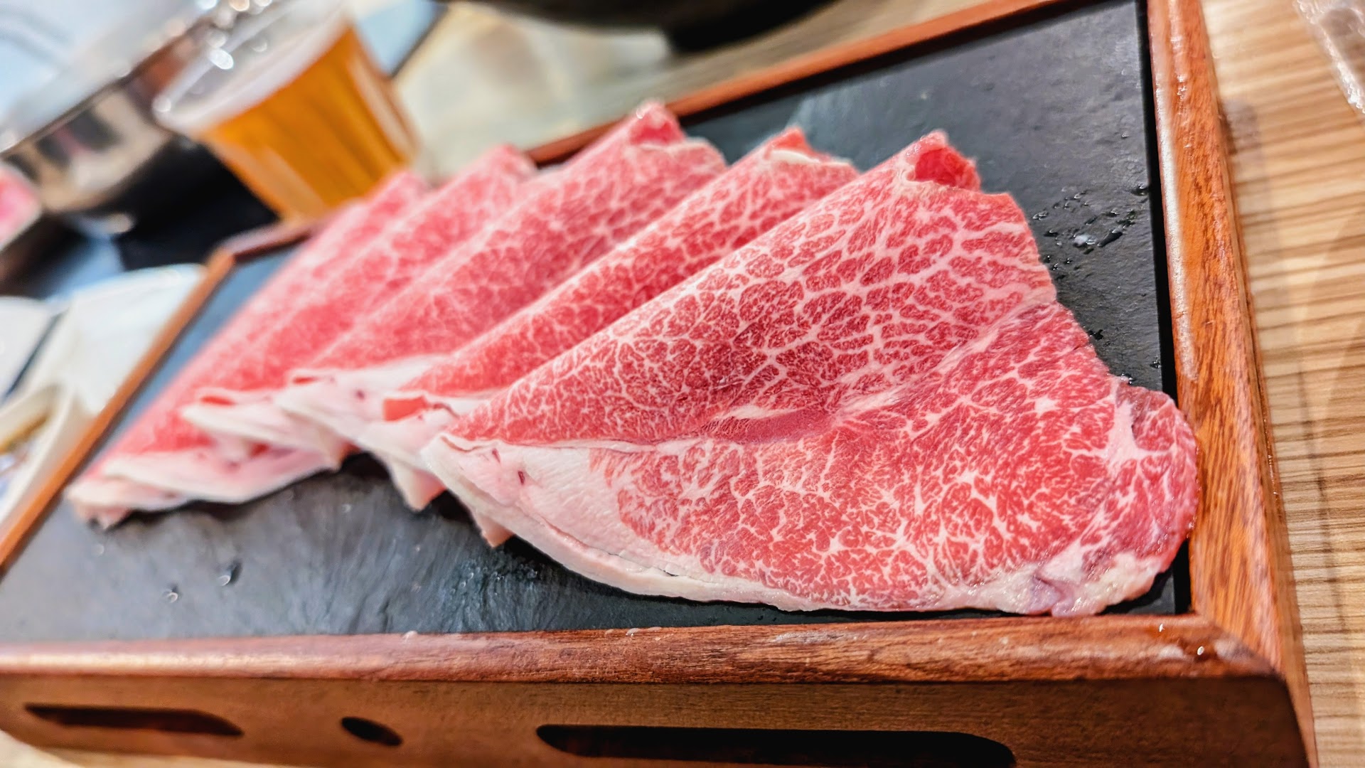 Read more羅東當地蠻有人氣的火鍋店,也是屬於半自助的。 湯頭部分,大蒜湯頭味道蠻不錯的,如果想要再更大蒜一點,可以自己再加。 當月壽星有9折優惠,當日壽星會送一盤肉。 A5日本和牛的口感跟在日本吃到的幾乎一樣,有保留既有的和牛油的香氣與滑潤軟嫩的口感。 A9澳洲牛肉則有比較重的牛肉本身的味道,帶有一種牛味。口感上會比較有肉感。 送的一盤肉則比較硬又很容易外面變老了但裡面還生的。 半自助式的櫃台有少見的茼蒿,還有韓式的泡麵。麵吃起來口感比較Q彈。 除此之外,還有一些傳統的小點心跟飲料,例如咖哩拉哩、中華豆花、阿薩姆奶茶等。 It is a popular hot pot restaurant located in 羅東, also featuring a semi-self-service type. As for the broth, the garlic base is good, and you can add more garlic by yourself if you want. It has a birthday discount of 10% off for the month and a plate of free meat for birthdays on the day. The texture of level A5 Wagyu is similar to that eaten in Japan. It maintains the existing fragrant flavor of Wagyu oil and has an amazingly tender texture. The flavor of level M9 Australian Wagyu has a strong beef flavor by itself. The texture of the beef is more biased towards being meaty. The texture of the free meat plate easily becomes hard on the outside with a raw inside. The buffet area provides some rare ingredients, including crown daisy and Korean instant noodles, which have a texture that is more elastic than Taiwanese noodles. Furthermore, there are some traditional snacks and beverages such as spiral corn cookies, 中華 soybean pudding, and Assam...