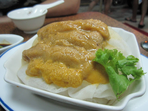 接著上貓仔奇、燙小管、還有特別為我準備的水針生魚片(他店裡是不供生食的,非常鮮甜)、紫菜生蚵、海膽炒蛋(我們都非常喜歡這些全是澎湖非常有名的道地名菜然後,他還要再上,我們馬上阻止,因為我們真的吃不下了其實只吃了1/3我們就飽了最後一張圖老婆正在努力中!😂