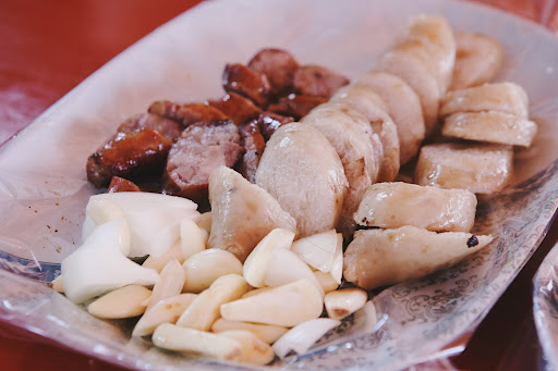 米腸是秤斤賣的,感謝觀光客的持續贊助,據說現在的價格,比起從前是貴上許多,但是那軟糯彈Q,豬油香和著糯米香氣的迷人口感,確實不變,單獨享用,味道足矣,搭配油膏、甜辣醬、香腸共同食用、更有了濃烈的滋味。