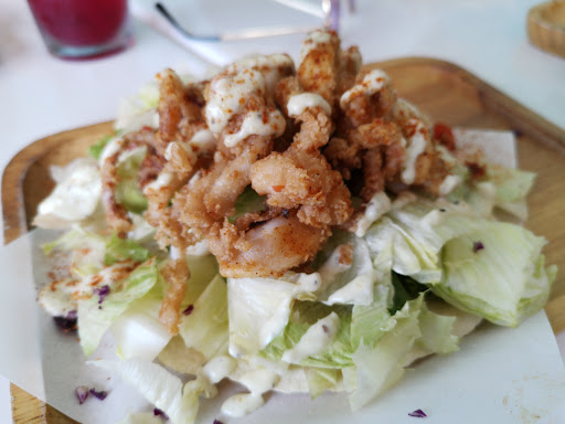 Read moreWe chose to come here because the coaches from the stand up paddle activity recommeded this place. We knew beforehand that the GOOGLE MAP rating of Penghu might not be so accurate. After viewing individual comments, we had mentally prepared ourselves somehow. The 5 of us all had different main dishes. Though they were not too outstanding in terms of taste, they were quite something if you're looking for something to photograph the plating. The waitresses were not that kind as described from other comments. I felt rather a bit mechanical from the introduction. The recommendation from it can be easily presumed that the purpose was to drive up our bill. We were 3 guys and 2 girls and they recommeded us to each order the +100 NTD sets and a large size platter, which would totally be over-ordered. The cover of the tampura was above-average, yet the seafood itself was a little bit unfresh and too wet with both the shrimps and the squids. Recommend to order the submarine burger style (is that a word?) because the taco style food was plated like a pyramid with the tempura on top. You'll have to finish your tempura and then your salad before you can make that taco a roll