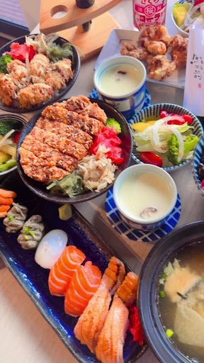 Read more這次用餐整體體驗非常滿意!餐點上菜速度快,服務人員態度親切又細心,整體氛圍輕鬆舒服。 我們點了鮭魚丼、豬排丼、炸廣島牡蠣丼、壽喜燒炒烏龍,還升級了套餐,另外還加點了炙燒鮭魚肚握壽司、花枝握、鮭魚握、蟹膏軍艦、海膽軍艦、蘆筍鮮蝦手捲、海苔壽司、豆皮壽司、唐揚炸雞、照燒松阪豬,以及日本汽水。