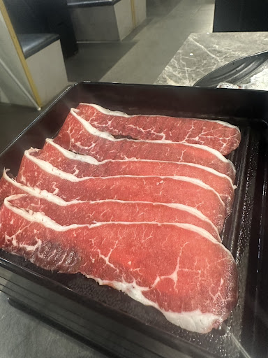 火鍋都是鴛鴦鍋 有分養生鍋跟麻辣鍋底 餐盤有用顏色區分肉品(以免混用到肉品) 紅盤是裝豬肉、羊肉 黑盤是裝牛肉、海鮮