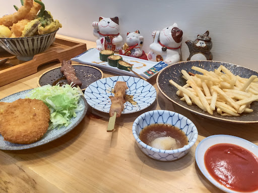 我們當天是點 海老天丼 190 豚雙拼丼 190 湯跟飯都可以再續哦~ 整體份量覺得不用續就能吃飽了👍 海老天丼擺盤超美🥰很適合拿來拍網美照 喜歡吃肉的可以點雙拼,有炙燒有炸豬排😍真是太喜歡了