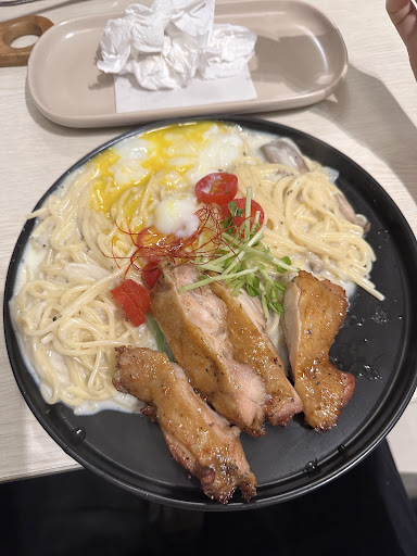 Read more2025/5/13 ▫環境:5.0/5.0 ▫服務:5.0/5.0 ▫️餐點:5.0/5.0 ▫花費:1640元/4人 ▫ CP值:中等 ▫停車:易,路邊停車格 ▫支付方式:街口支付 ▫消費項目:B套餐,E套餐,點了4個主套餐,單點雞塊及炸豆腐 ▫總評:環境很明亮,裡面空間大,也相當的舒適,地下室也有用餐區,廁所也很乾淨,這裡的點餐以掃QR為主,手機點完後至櫃檯結帳,才會開始製作餐點,其實等候的時間不會很久,不過要是可以先來酥皮濃湯,後面再接主餐會更好!😂~因為幾乎是一同上桌,相差時間可能不到1-2分鐘,如果先喝湯 義大利麵就涼了⋯⋯所以很難抉擇要先下手哪一道,炸物很好吃喔,炸豆腐真的非常的酥脆,主食義大利麵、燉飯、焗烤飯...
