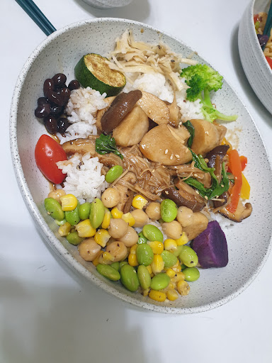 至於餐點我點了椒鹽豆包,最安全保守牌,85折後119,原價140。 飯有用心加紅藜!而且顏色搭配起來很漂亮,就是健康的家常味,原型食物的味道~ 有做過菜就知道要準備食材什麼的成本真的不低,就看學生能不能接受咯