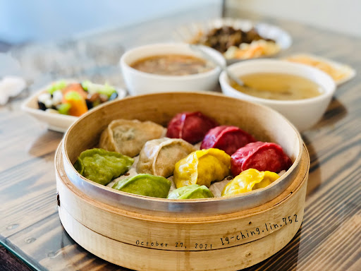 蒸餃上桌, 五顏六色繽紛飽滿的蒸餃好美~ 忍不住一拍再拍,不停拍! 老爺嫌棄的說⋯蒸餃要變硬了啦! 闆娘說餃子皮~ 紅色-是用火龍果染色、黃色-是用薑黃 綠色-是菠菜、白色-是全麥、 紫色-是蝶豆花(隱藏版) 因為蒸餃皮是闆娘自己做的, 皮桿的薄如輕紗,根本沒機會變硬🤭 不同外皮搭配、不同的內餡, 讓你一個顏色一個滋味,很是特別, 但別問我內餡是什麼,自己來吃才有驚喜感😋 一籠裡四種口味都好吃, 不過我特愛 包有九層塔口味 跟 鷹嘴豆口味 的 闆娘還特地拿出特調辣醬, 請我們品嚐沾沾蒸餃口感,真是好口福🤭 整體吃起來的好感度, 讓我們決定打包一些 冷凍生鮮蒸餃回家👍