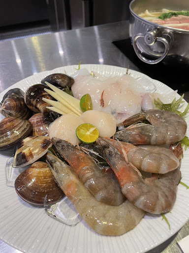 《餐點🌕🌕🌕🌕🌕》 湯頭真的很棒!喝得出來跟屋馬那種根本是不同的境界! 配菜的部分都是比較健康的,完全沒有火鍋料都是原型食物!吃起來完全滿足中的滿足! 肉質就算是非和牛也是可以涮大概7分熟就可以吃了!完全沒有腥味(我個人很怕),海鮮是先到不行!蛤蜊大顆!蝦好好吃!魚肉也是完全沒有那個海腥味!那個透抽也是先到不行!之前吃的真的都沒資格說是海鮮欸!是脆的!他是脆的!不是那種軟軟爛爛的或是硬硬的口感! 生食級干貝…再講下去我要再去一次了喔!