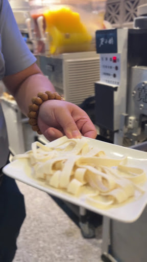 但是這間餐廳的現場製作麵條,不得不好好的稱讚一番,我選擇的是寬面,這個機器做出來的麵條紮實Q彈,真的應該是我吃過台北市機器做出來最好吃的麵條了! 而且超耐煮!