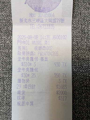 Read more顧客體驗分享: 之前騎腳踏車經過因為不用排隊常常順路買了一兩支路上補給 每一次都是用小塑膠袋分裝 這一次準備帶出國分享給國外同事 所以買了盒裝三盒散裝25支 店員拿出三袋散裝分別10、10、5 向店員詢問是否可以幫我裝小塑膠袋 店員回答因為是熱的不能裝小塑膠袋 我就請問那可以給我小塑膠袋我回家自己分裝 店員告知10個塑膠袋一塊(我買一支也是用塑膠袋裝也沒有加0.1塊) 另外三個盒裝有提供三個盒裝塑膠袋(這個我沒取因為我有自己帶大袋子) 就是這三塊錢讓我寫出這一篇顧客體驗 希望這是店員自己的決定不是貴司的教育訓練 另外,我當下拿到的金牛角了不起是常溫絕對不是熱的 看到這裡的朋友們,我想說這家金牛角絕對不是難吃 但頂尖的還是要去市場裡面那一家 只是那一家經常要排隊 最後如果騎車經過不需要排隊我還是會買來補給 至於貴司願不願意改善銷售流...
