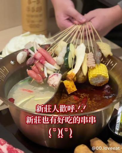 新莊人歡呼新莊也有好吃的串串!😍 來自四川的麻辣串串鍋吃法 絕對是麻辣控的新歡💖 第一次吃覺得新鮮有趣 重點食材也新鮮好吃! 將食材用竹籤串起真的串的很牢固 這次吃了40串沒有一串串物掉落~ 用串的不用撈料超級方便👍 想吃甚麼再拿甚麼 每一份的分量剛好一人份 對少人的聚餐也很適合 環境很乾淨生意不錯建議事先訂位!