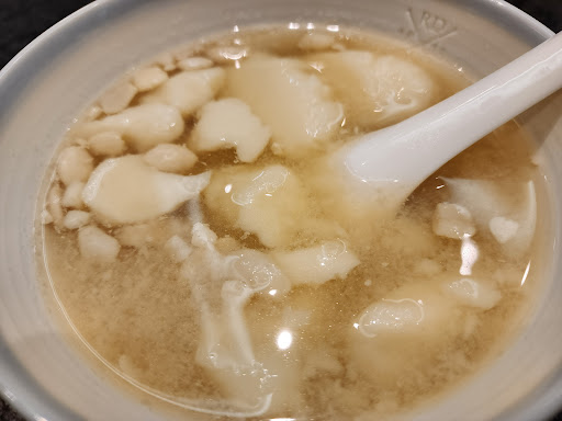 阿伯的豆花有分冰的跟溫的,夏天最喜歡在那邊的內用,在夏天最幸福的事情大概就是吃上冰涼的豆花解暑了,綿密入口即化的豆花,配上Q彈有嚼勁的粉圓,以及超大顆的古早味湯圓,是我最喜歡的搭配,且阿伯自己熬的麥芽湯,更是美味無比,甜得恰好而順口,不會有過於清淡像在喝水,或是甜膩到無法嚥下的情形出現,根本可以稱上黃金比例,而在冬季的時候,喝上暖甜的麥芽湯更是幸福,身體瞬間就暖和起來了(若來生理期,更是推薦喝阿伯的溫甜麥芽湯,自己本身是生理期來會痛到冒冷汗的類型,喝了之後總是會好很多,就不用再起身自己泡黑糖水做緩解了)