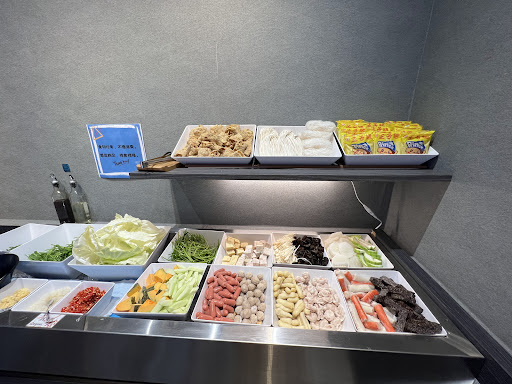 用餐時間2023/8/03中午初訪 餐點方面,菜盤式自助式可以根據個人喜好選擇自己喜歡吃的,有提供白飯、麵條、冬粉以及王子麵,肉品質挺好的,尤其是培根牛不像很多店會拿整盤都是油的肥牛也當成一盤,重點是連打卡贈的也是給不錯的培根牛,這點值得表揚。海鮮也都還挺新鮮的,蛤蜊很大顆,草蝦也很大隻,小卷眼睛都還很晶瑩剔透,新鮮看的出來,冰品是小美的有四種口味,但飲料區差點意思,醬料區如果有香菜跟花生粉就更棒了。服務方面,店員介紹餐點時挺仔細的,上菜也會詢問可否移個位置,也很積極地詢問是否要加湯,空盤收的速度也很快。氣氛方面,店面太小所以在醬料區跟自助區會卡到,不過這也是沒辦法的事,整體來說店裡面整潔乾淨,是個舒服的用餐環境。